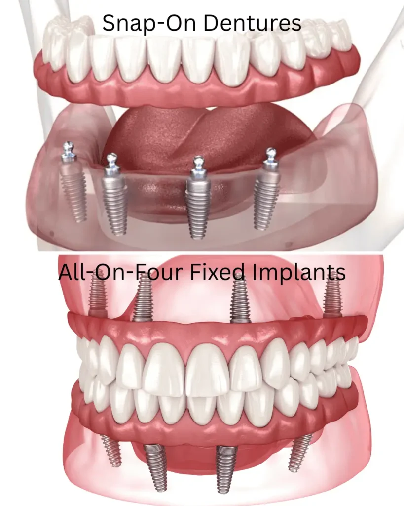 Many patients start with Snap-On dentures and later upgrade to All-on-4 for a permanent solution.