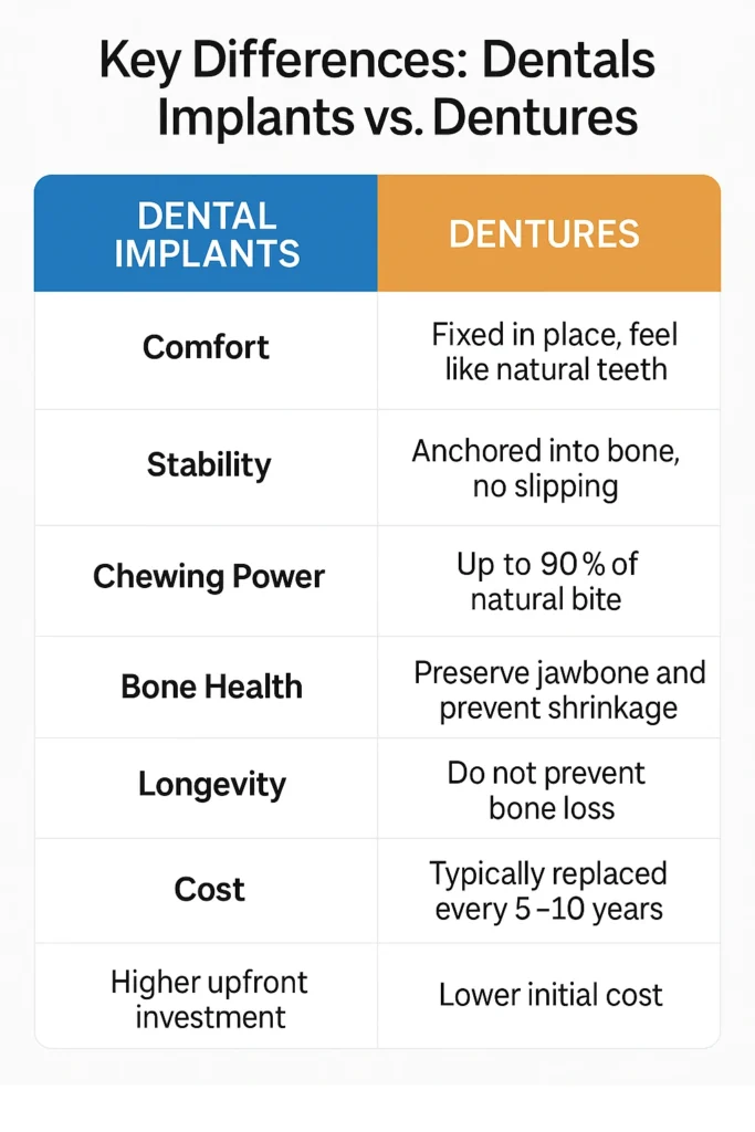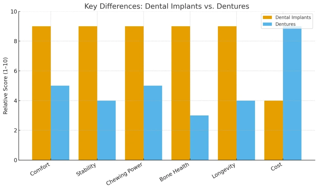 Key Differences: Implants vs. Dentures